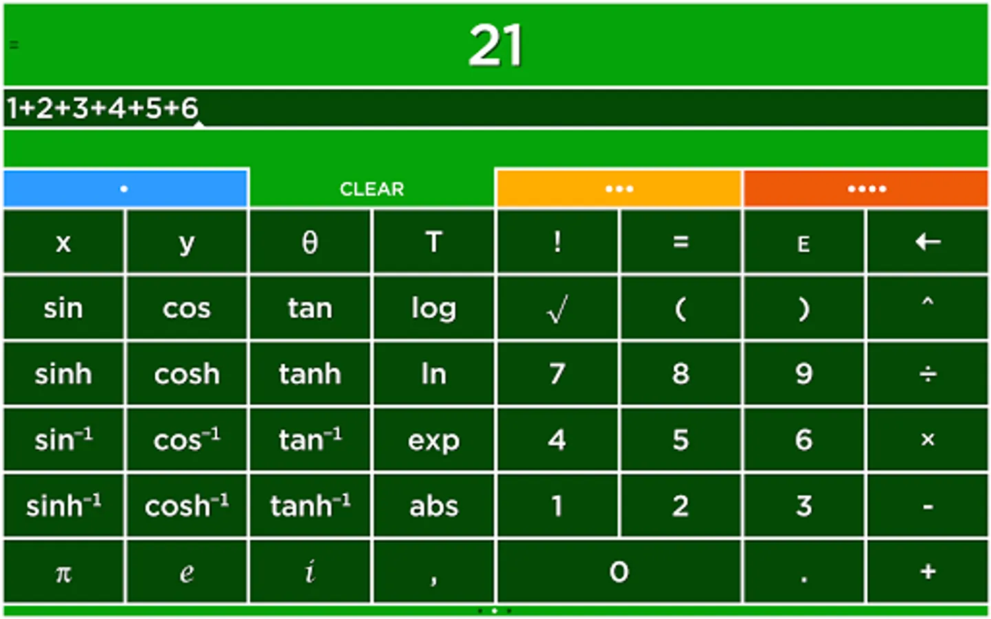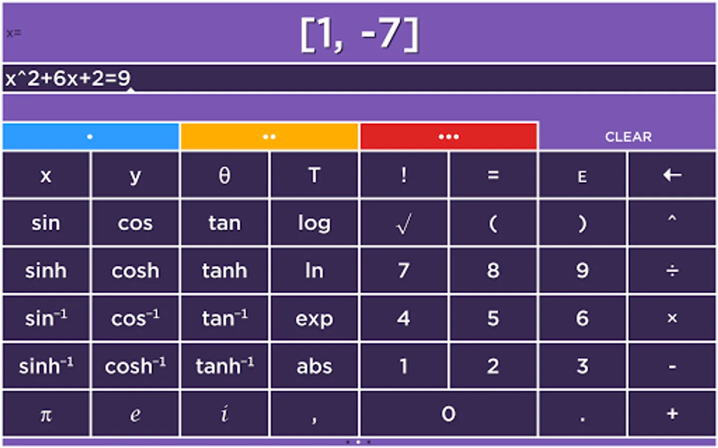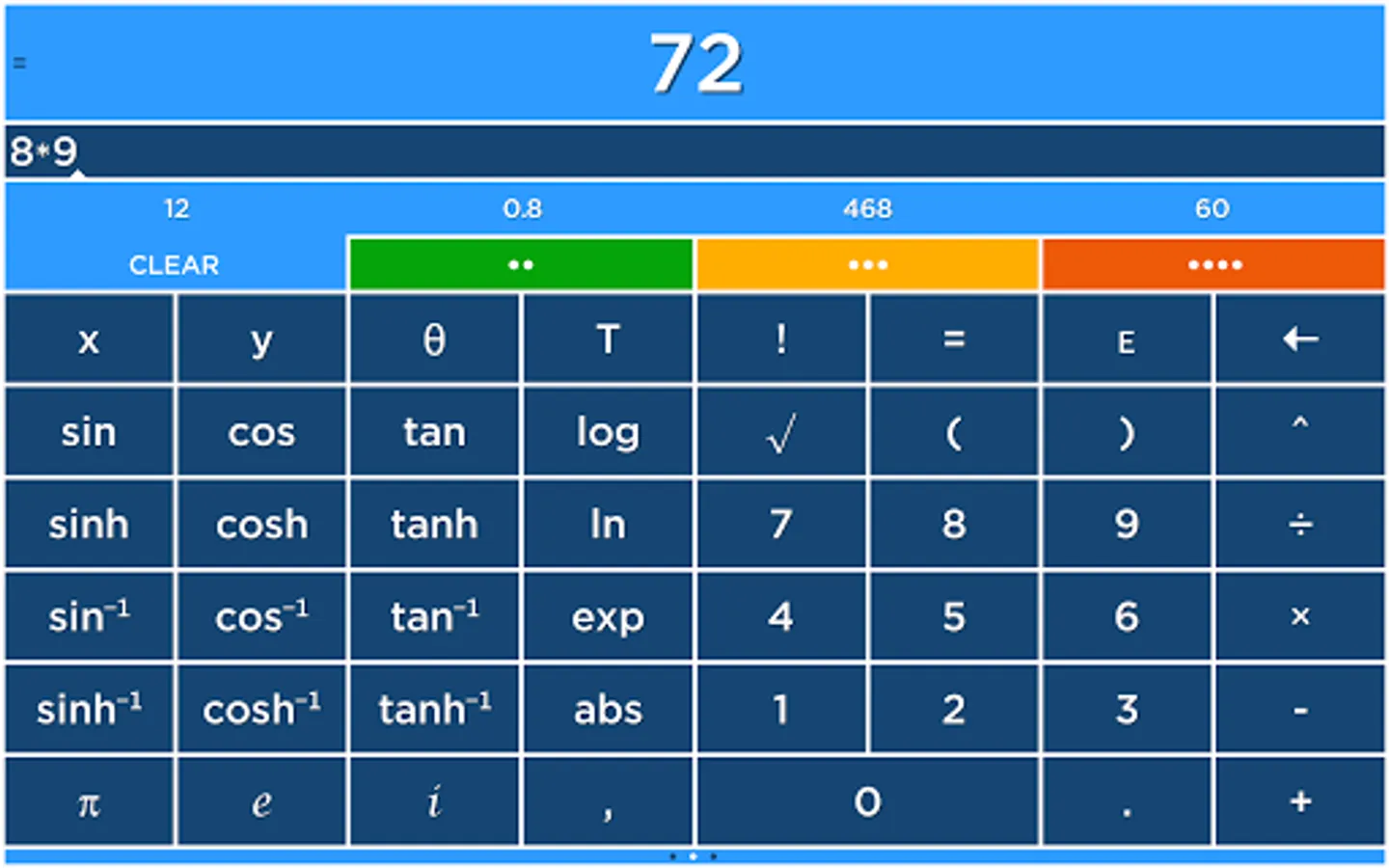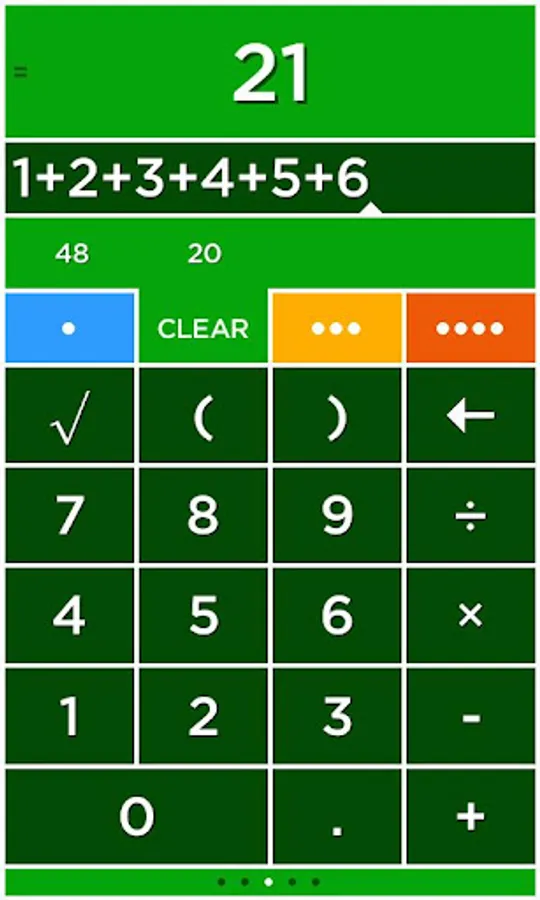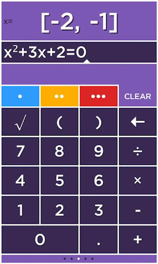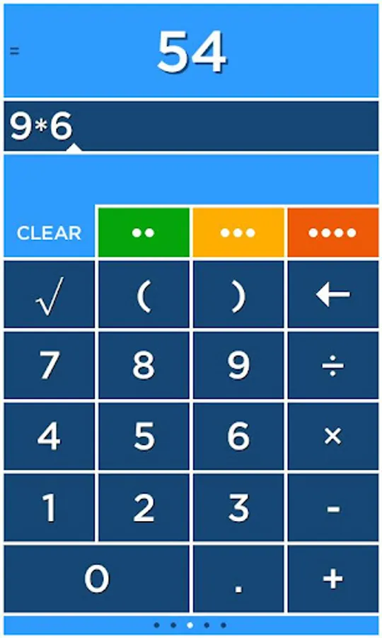 Solve has four tabs that select four different calculators each with its own color. Multiply numbers, calculate a tip and find a square root all without clearing your results!