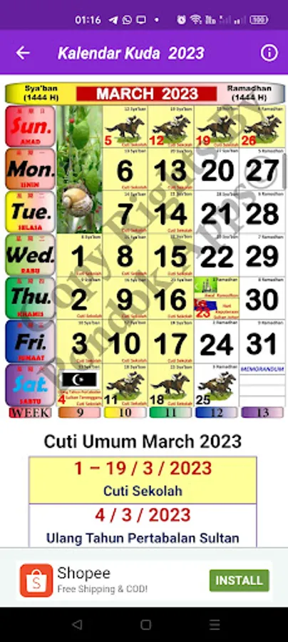 The Malaysian Calendar application for the year 2023 in HD display for all Android users for the convenience of planning trips, planning vacations and various other uses...