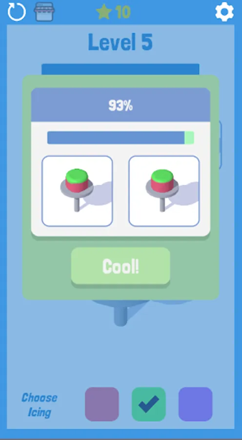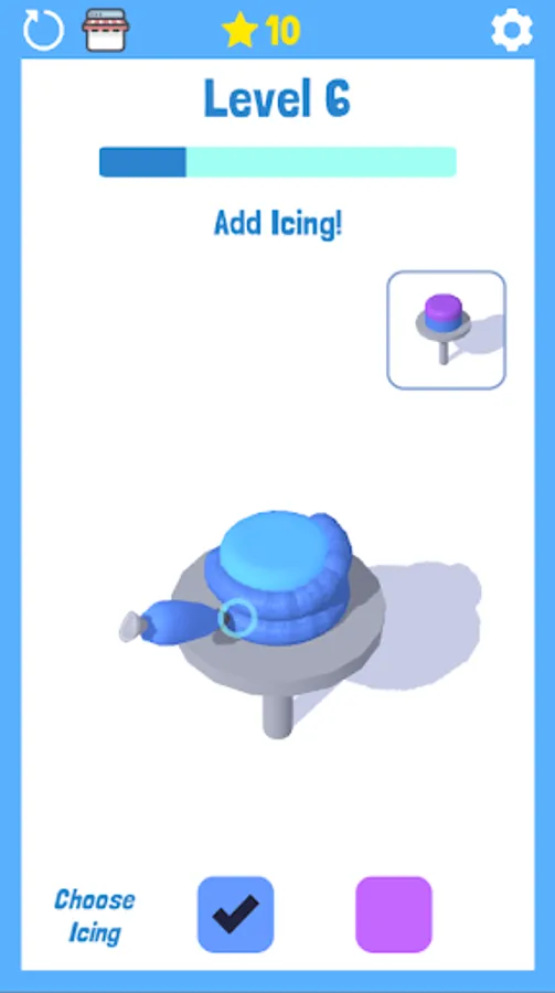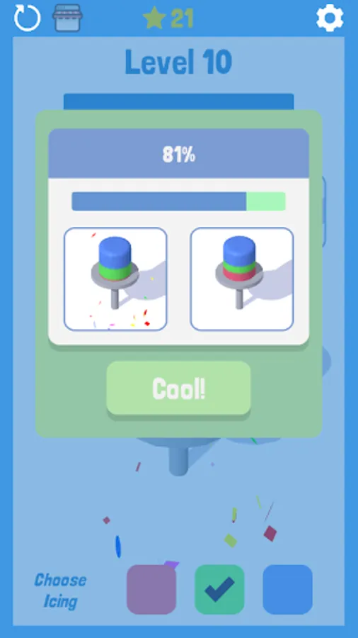 Decorating the cake with icing to look beautiful is final goal on this game. With a multicolored icing and a brightly colored coat that is good for you to feel comfortable playing this game. In this game you will color the cake according to the colors in each level to make it as similar as possible. In this game you will color the cake with the icing according to the color requested by each level to make it as similar as possible to the existing examples. If you can make as closely as possible and get a high point then you can go to a higher level. But remember the higher the level, the more difficulty increases.