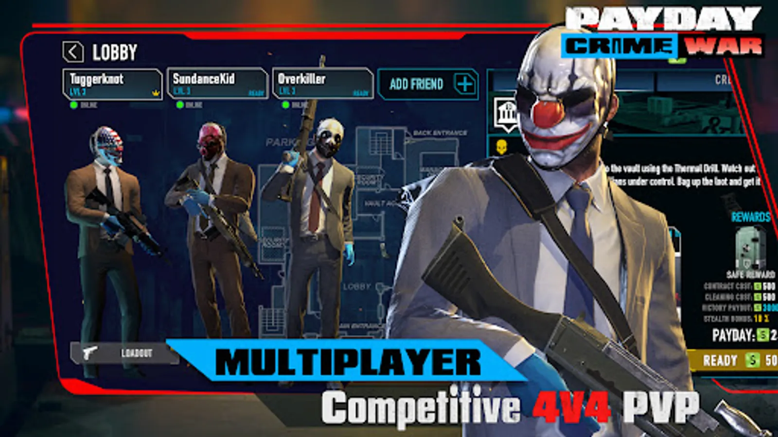 Join in on the official PAYDAY® experience with an all new mobile twist! Heist with friends in the best co-op first-person shooter on mobile. Take on other heisters for the first time ever in fast 4v4 PvP game modes! Grab your mask, join a crew, and heist your way to the ultimate Payday!