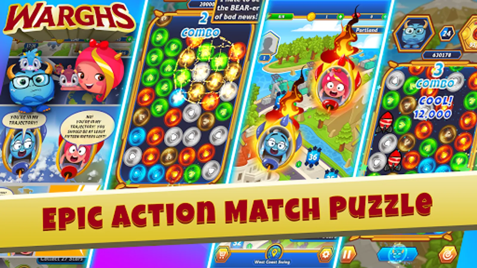 Warghs is an exciting & fast-paced Match 3 puzzle game! Non-stop real time action! Introducing Wylie and Wynnie Wargh, the cute and adventurous duo that’s here to save Earth from… humans! Can YOU help the Warghs save Earth!?