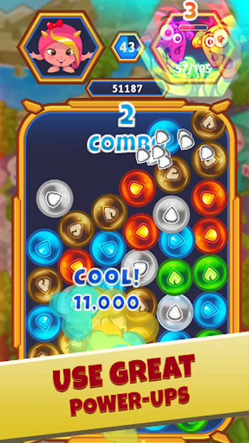 Match 3 or more to make a combo! Use your fast reflexes to create big combos! The bigger the combo, the higher points you score!
