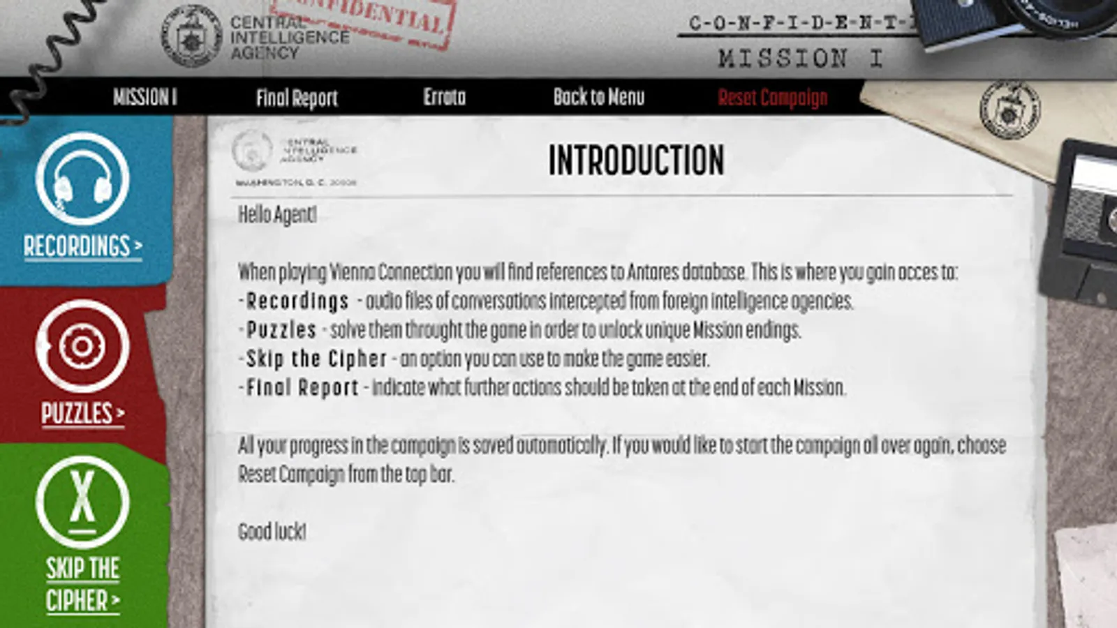 Soviet agent’s activities—Vienna Connection is the game for you.