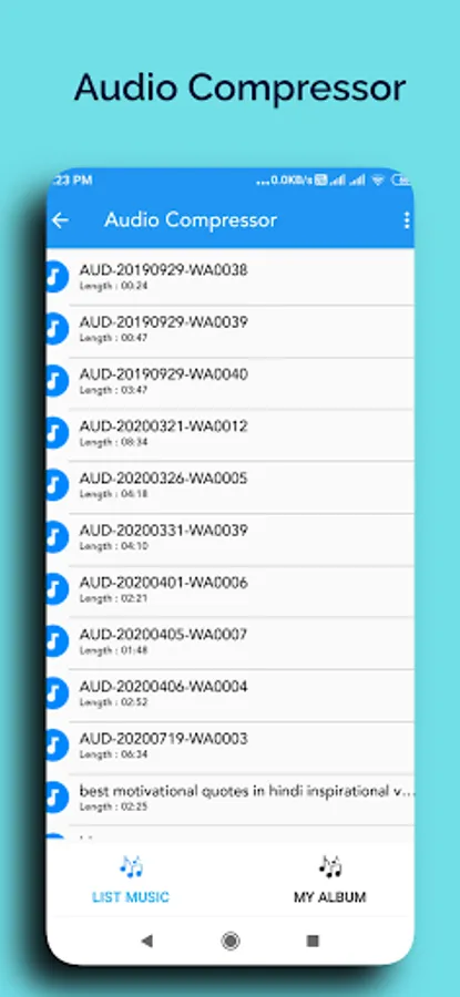 AUDIO COMPRESSOR : Compress any audio song in a 3 Different K/Bit Such as 64 K/bit,128 K/bit,256 K/bit.