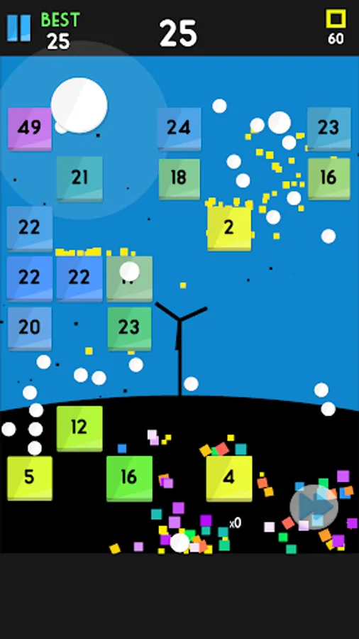 Shoot at the angles where you can destroy the most Bricks and watch the chain of bouncing balls hit, bounce and Shatter and Destroy the bricks.