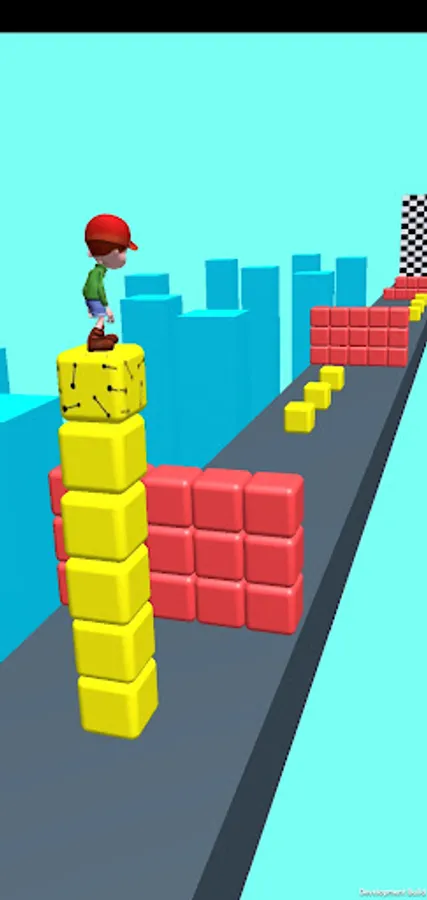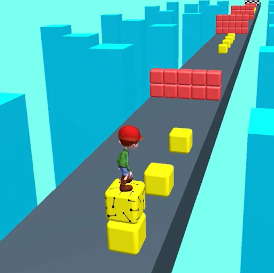 If you got hit by wall or obstacles like lava then its over. Need to avoid these and reach the finish line. Collect pickup cubes on the way to build the tower which will help in avoiding these obstacles.