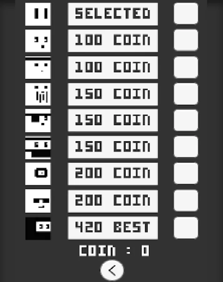 You can trade the coins you earn in the game to purchase new skins in the shop. There are currently nine unique skins at your disposal.