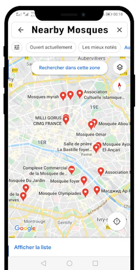 ⭐ Nearby mosques from your current location.