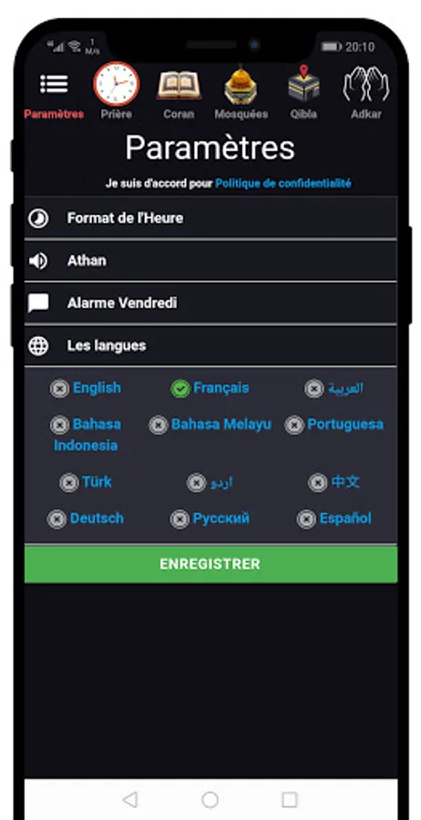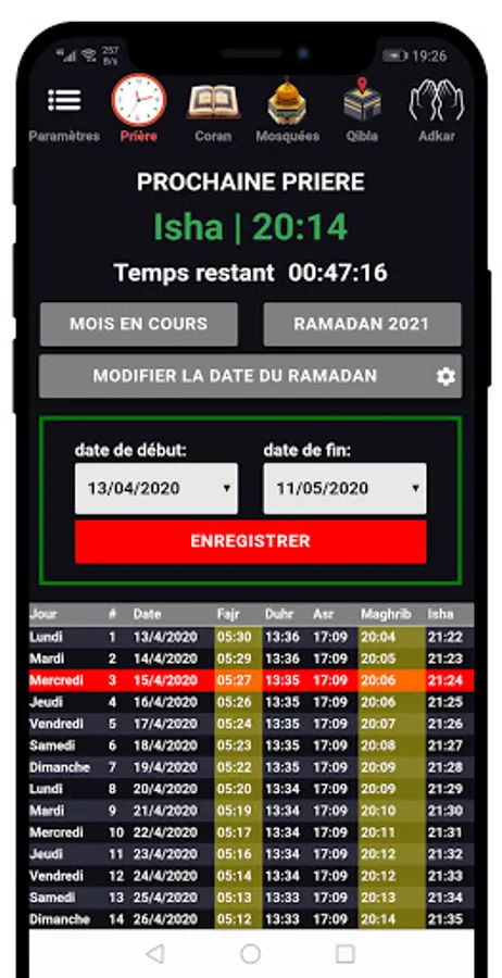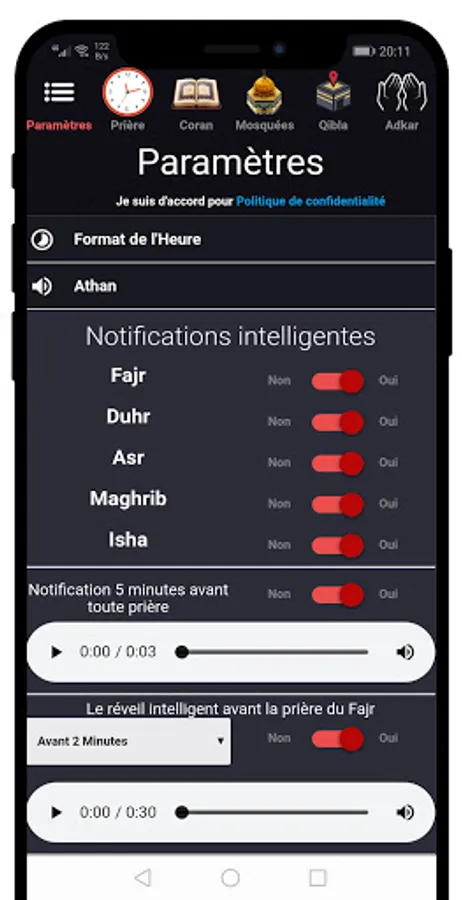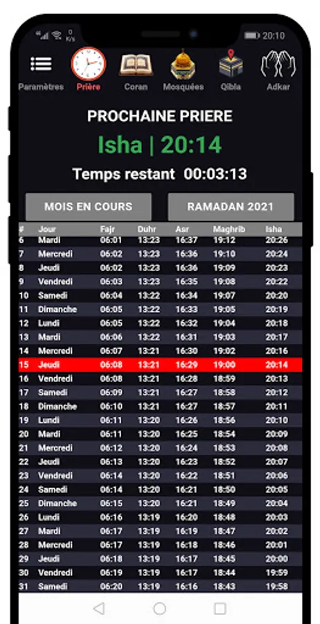 This wonderful application allows you to see the prayer time for your current city and country with Athan for each prayer with many advantages, without GPS and without Internet connection to use it: