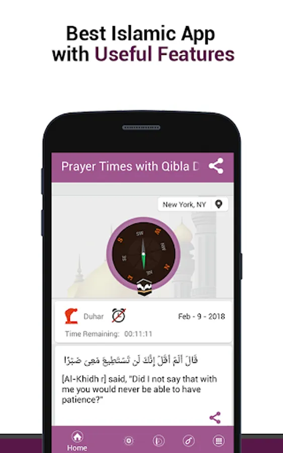 Mecca Compass is an Islamic app 🕋 for all Muslims around the world. Get Qibla location, Prayer Times, Tasbeh counter, Dua of the day, and 99 names of Allah with this Qibla finder app. This is a simple and easy-to-use Mecca finder app for smart android phones. With this Qibla Compass app, you can receive prayer notifications depending on your location. You can also set a custom prayer times by comparing the Azan times of the nearest mosque.