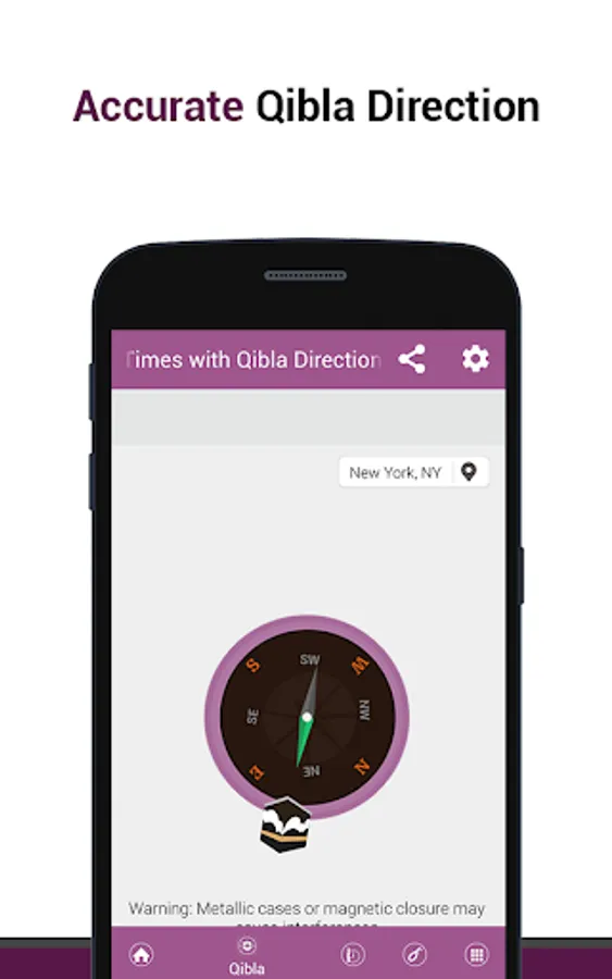 When you open this Qibla compass in the Salah time or Qibla Direction - Compass app, the direction of the Kaba will be displayed automatically, hold your smartphone flat and check the exact direction of the Qibla. The compass sensor function detects the direction of movement of the mobile phone and displays the true direction of Qibla in just a few seconds.