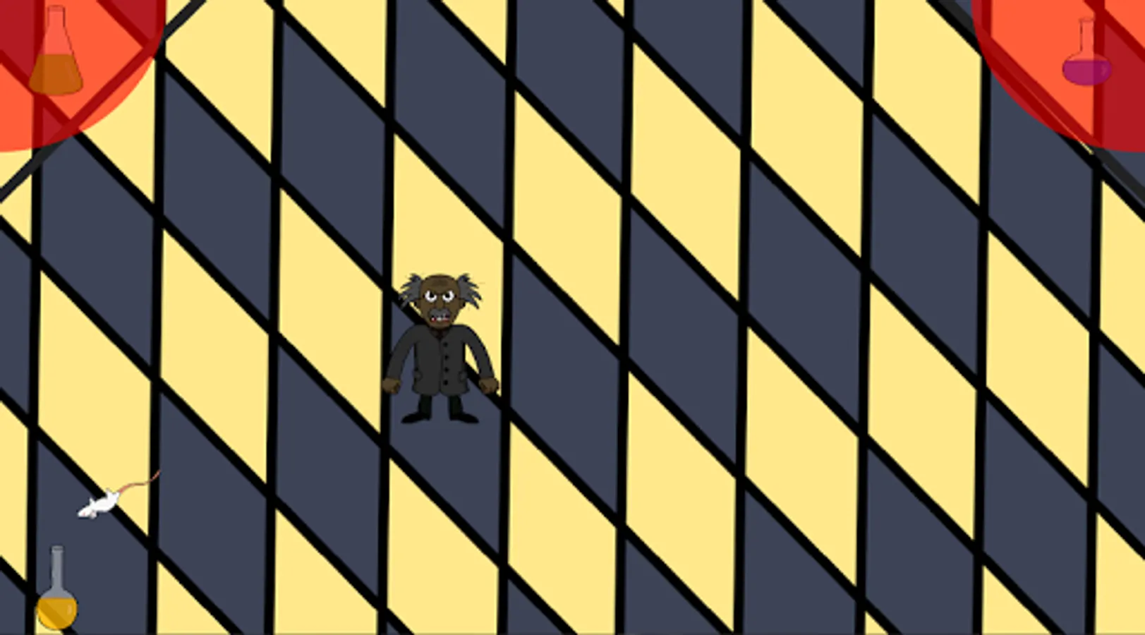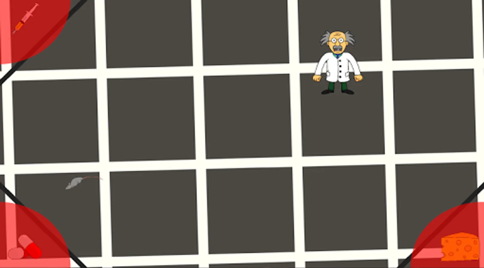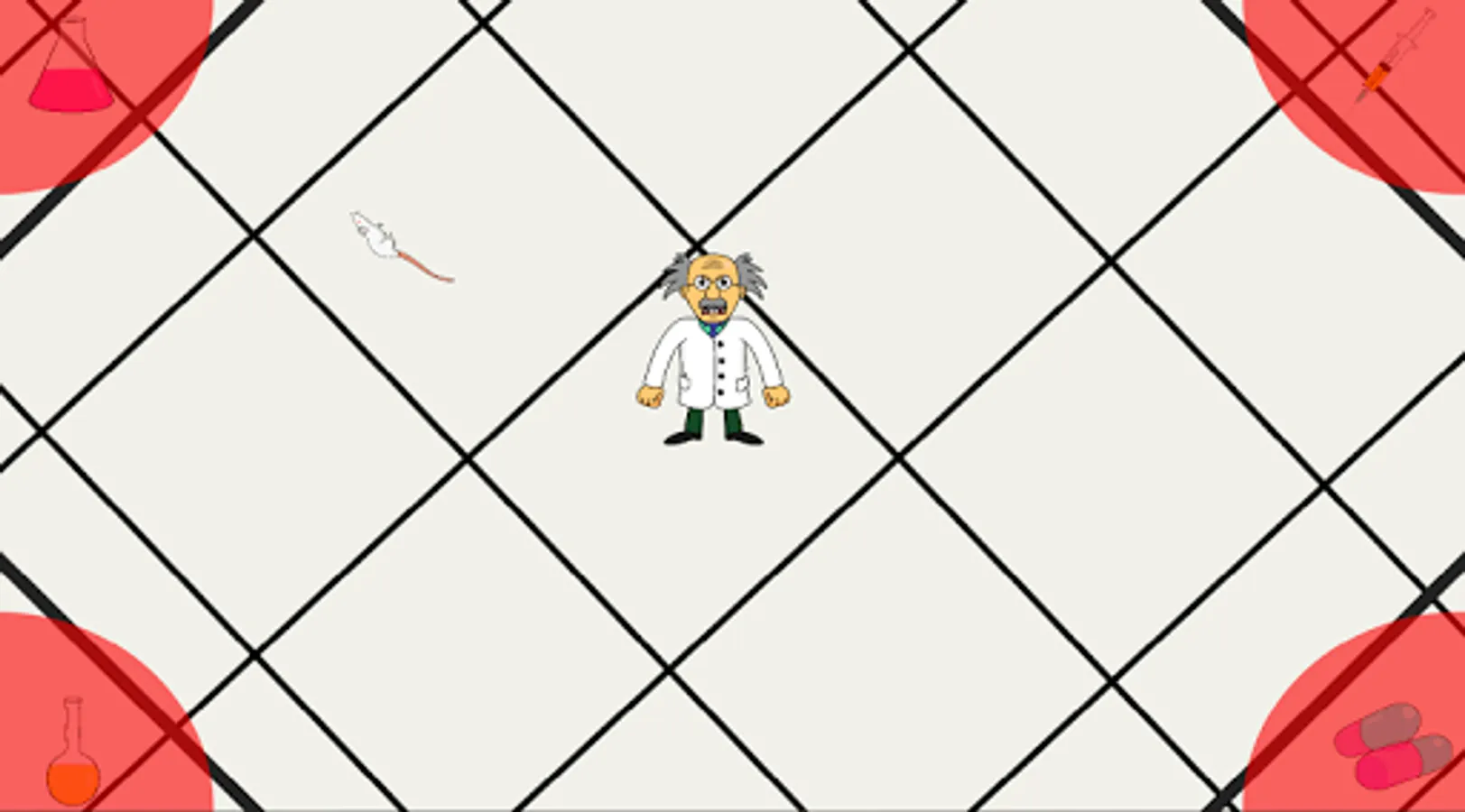Your rat is fleeing from an evil scientist and can only get to the next laboratory if it gets all of the four power-ups in the lab.