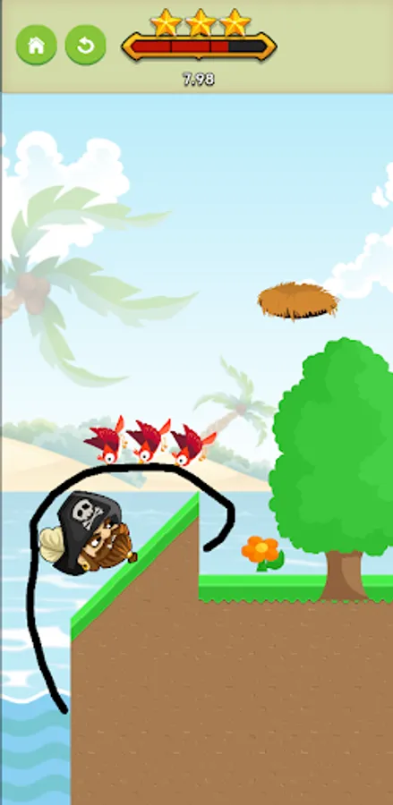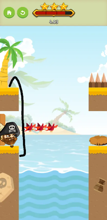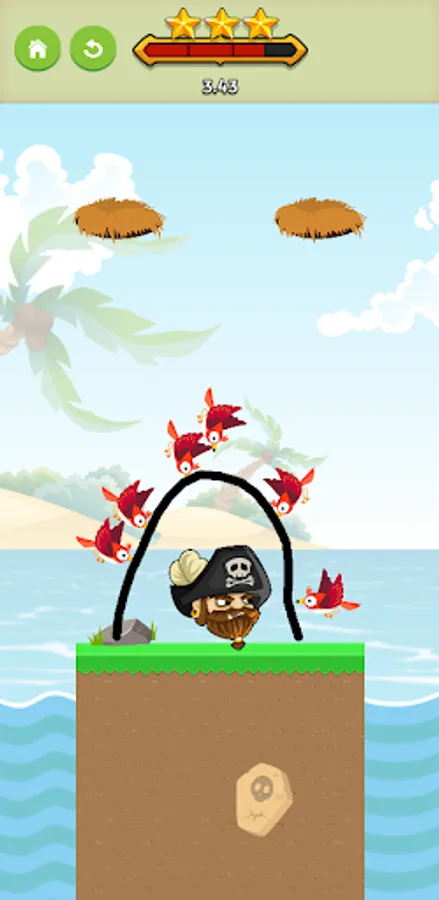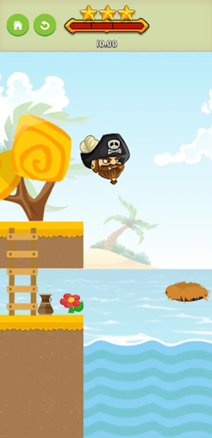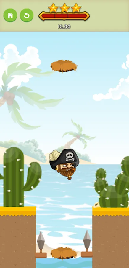 For each level, player tries to secure and save the pirate from upcoming enemies; like parrots, spikes and dangerous terrains.
