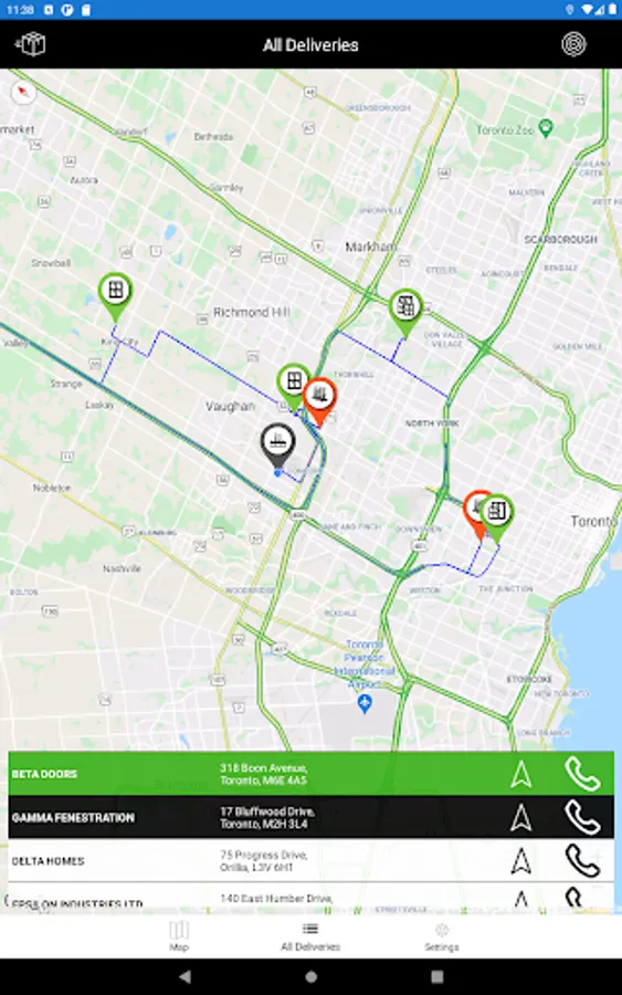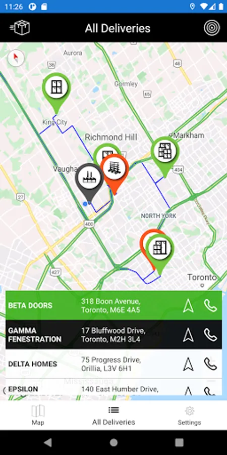 - Driver can view all the deliveries in the current shipping lot, and a mapped route detailing all the stops