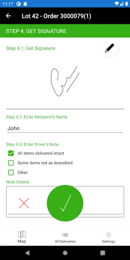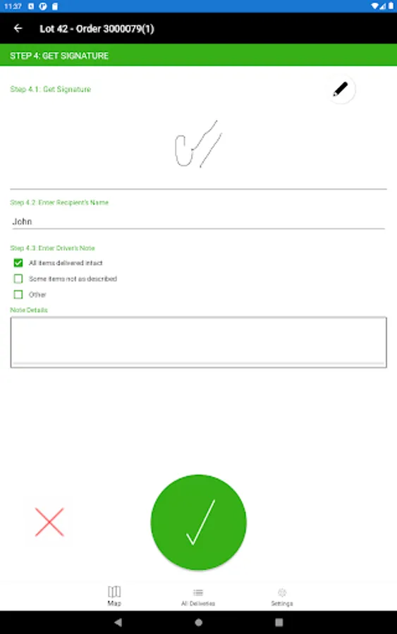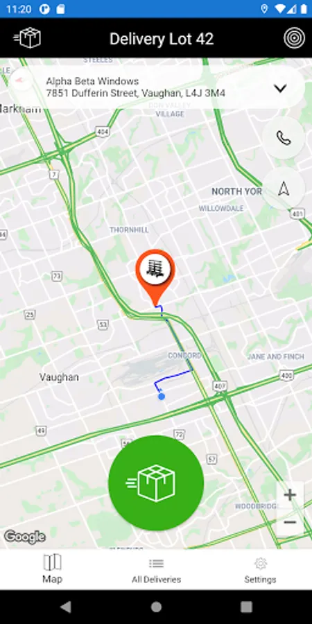 - Driver can use navigation and phone functions to contact the order recipient and use device Maps app to navigate to the delivery location