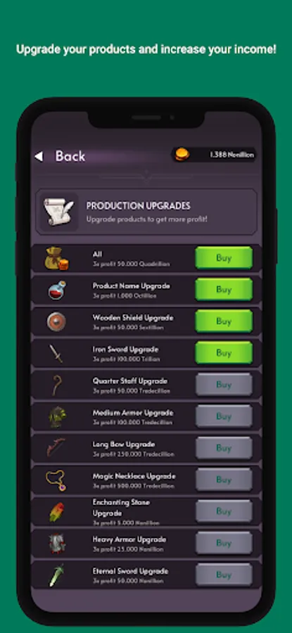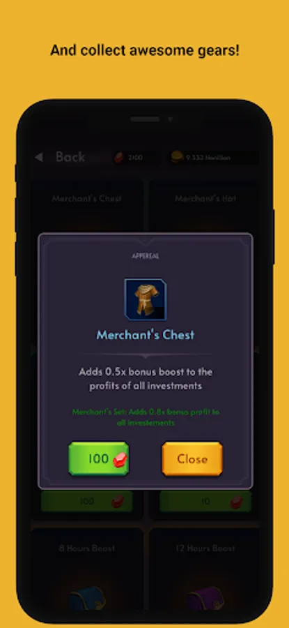 When you start to sell your first items, you can expand your shop and get some rare items to increase your profit with no adcap! You should invest your golds to gain much more!