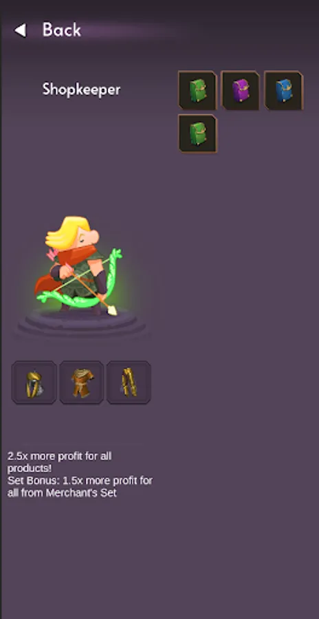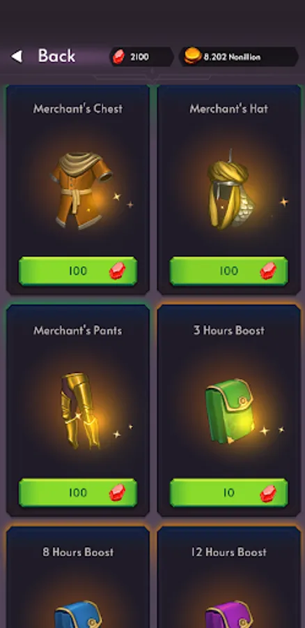 Here, all shopkeepers have their own style. By spending your gems on your fashion, yow will attract more adventurers to your shops, so that means more profit!