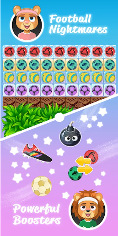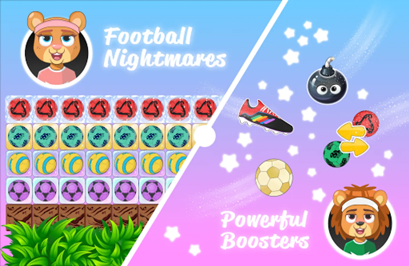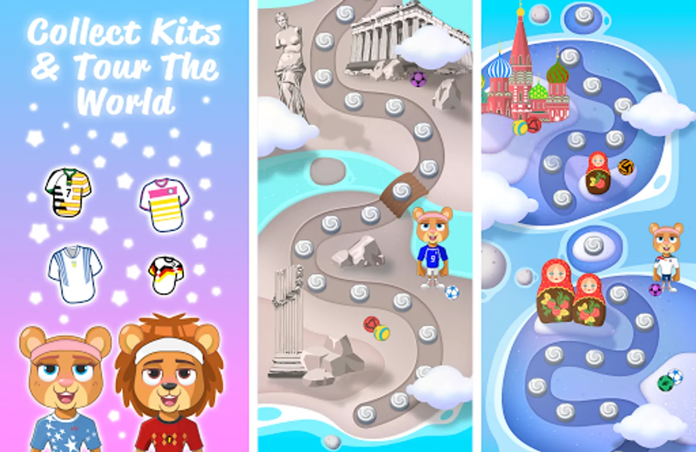 Join Harry and Steph on an epic football popping, Match 3 adventure! Tour a hand drawn world of famous landmarks as you conquer devilishly difficult levels with all sorts of perilous puzzles and crazy challenges. Fight the rising tide of muddy pitches in England, brave icy conditions in Russia, sandy Egyptian deserts and even battle against referees’ free-kick foam!