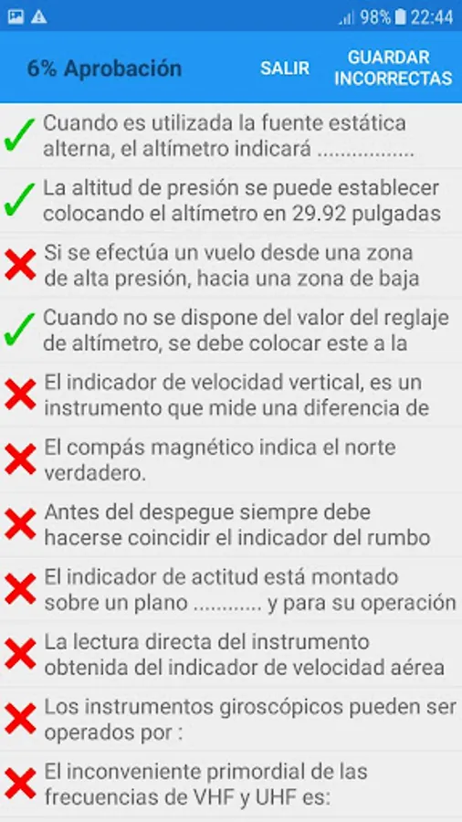 IMPORTANT: There are some questions that may seem to be answered incorrectly since this application indicates the correct answer indicated by the DGAC. This situation is specified in the explanation of each question. If you have any questions or concerns, do not hesitate to contact us at preparateparavolar@gmail.com.