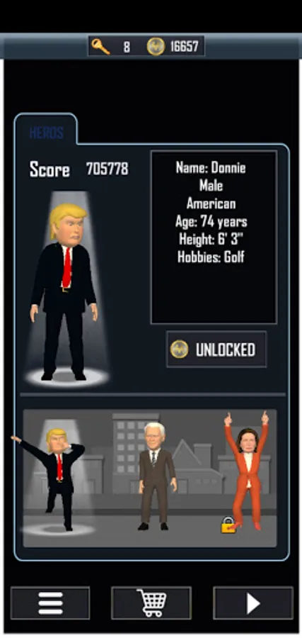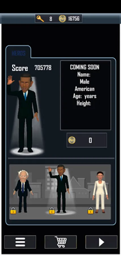 Presidential Characters. Select your favorite political figure as your running character. You'll be able choose from past, present and maybe future US Presidents or presidential candidates as well as other political figures. We might even add some popular world leaders from other countries around the globe.