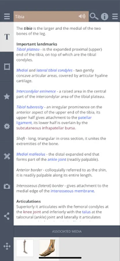 Read detailed and accurate text for each structure using the T icon, and in a feature unique to Primal Pictures, each anatomical term in the text is linked to the appropriate model in the 3D model. Selecting these links will highlight the relevant structures, bringing the text to life and make learning anatomy more visual and immediate.