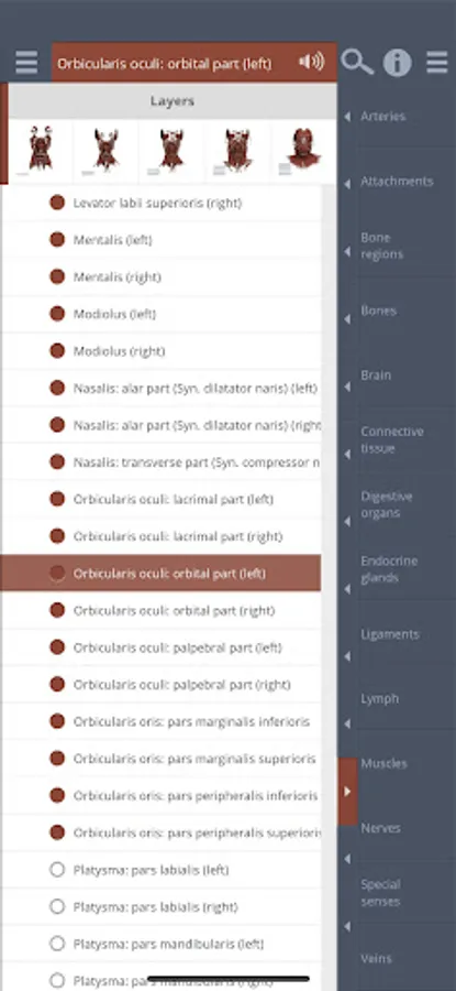 • The Contents folders arrange all 2,656 structures systemically, meaning you can browse by subcategory and switch all related structures on at once. It provides an excellent learning tool – for example turn on all branches of the facial artery, or the muscles of mastication.