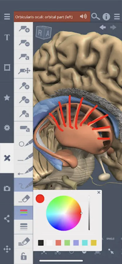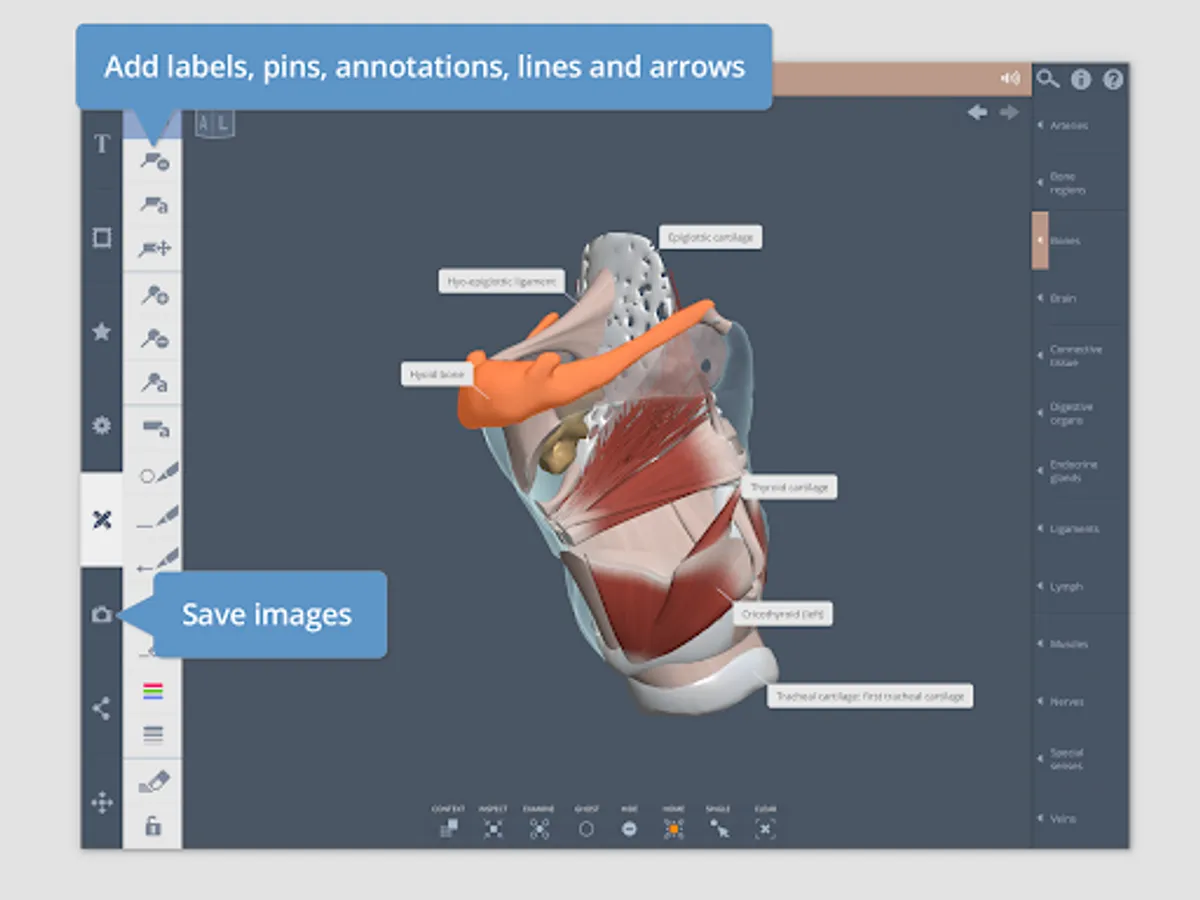 Read detailed and accurate text for each structure using the T icon, and in a feature unique to Primal Pictures, each anatomical term in the text is linked to the appropriate model in the 3D model. Selecting these links will highlight the relevant structures, bringing the text to life and make learning anatomy more visual and immediate.