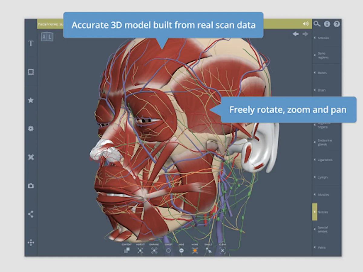 Primal's 3D Real-time Human Anatomy app for the Head is the ultimate 3D interactive anatomy viewer for all medical educators, practitioners and students. Meticulously built over ten years from high-resolution cross-sectional photographs of real cadavers, the app provides an accurate and visually stunning reconstruction of the anatomy of the head.