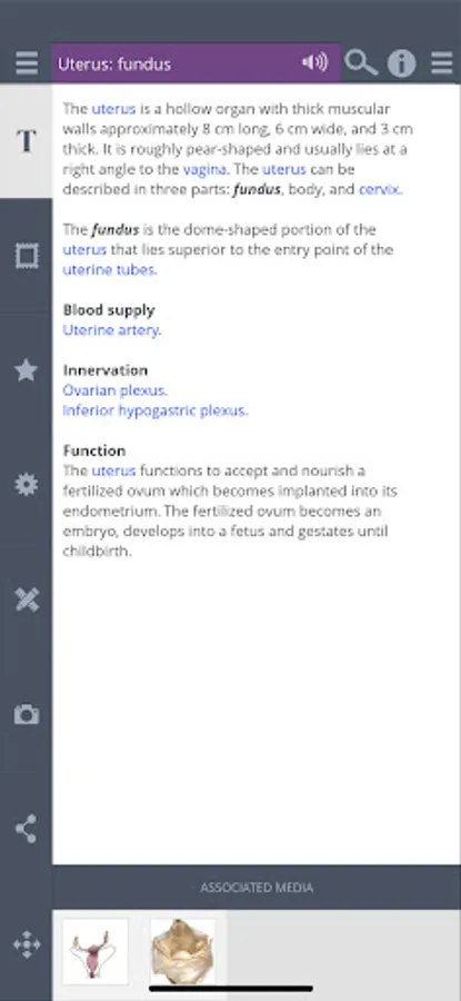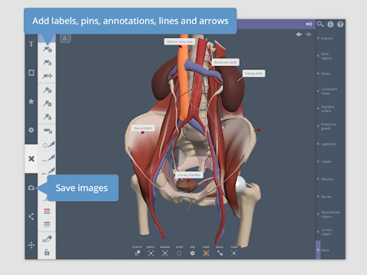 Read detailed and accurate text for each structure using the T icon, and in a feature unique to Primal Pictures, each anatomical term in the text is linked to the appropriate model in the 3D model. Selecting these links will highlight the relevant structures, bringing the text to life and make learning anatomy more visual and immediate.