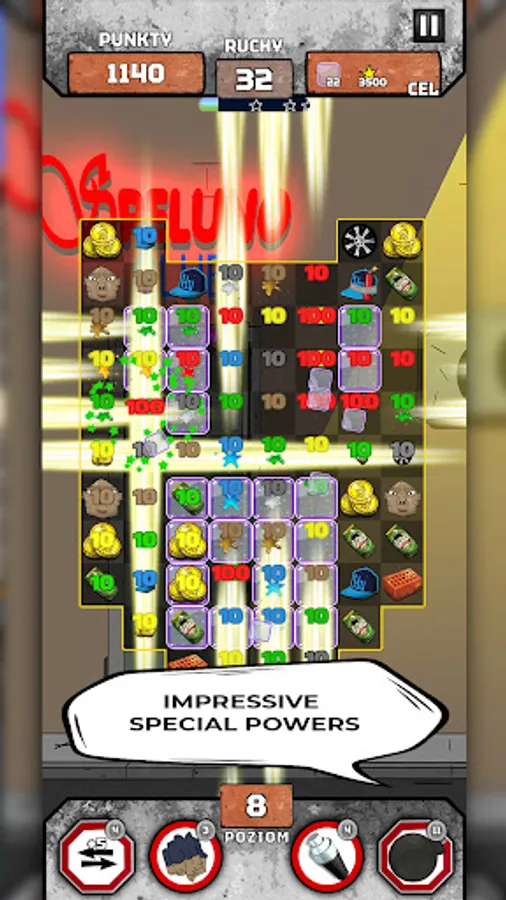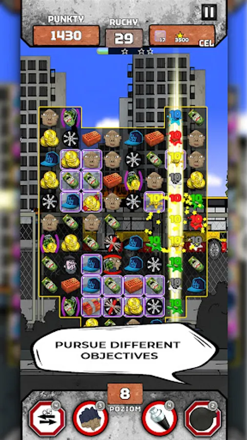 The game also features bonuses, such as bombs that destroy multiple blocks at once. Players can unlock new characters and levels by collecting points and achieving goals in the next stages of the game.