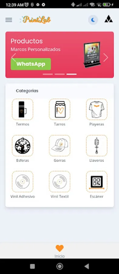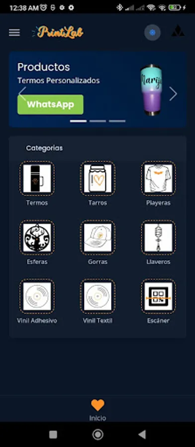 PrintLab es una app donde se muestran los trabajos realizados en personalizados con Vinilo y otros productos, así también permite la interacción entre el usuario y los productos con realidad aumentada desde nuestro panel de escáner.