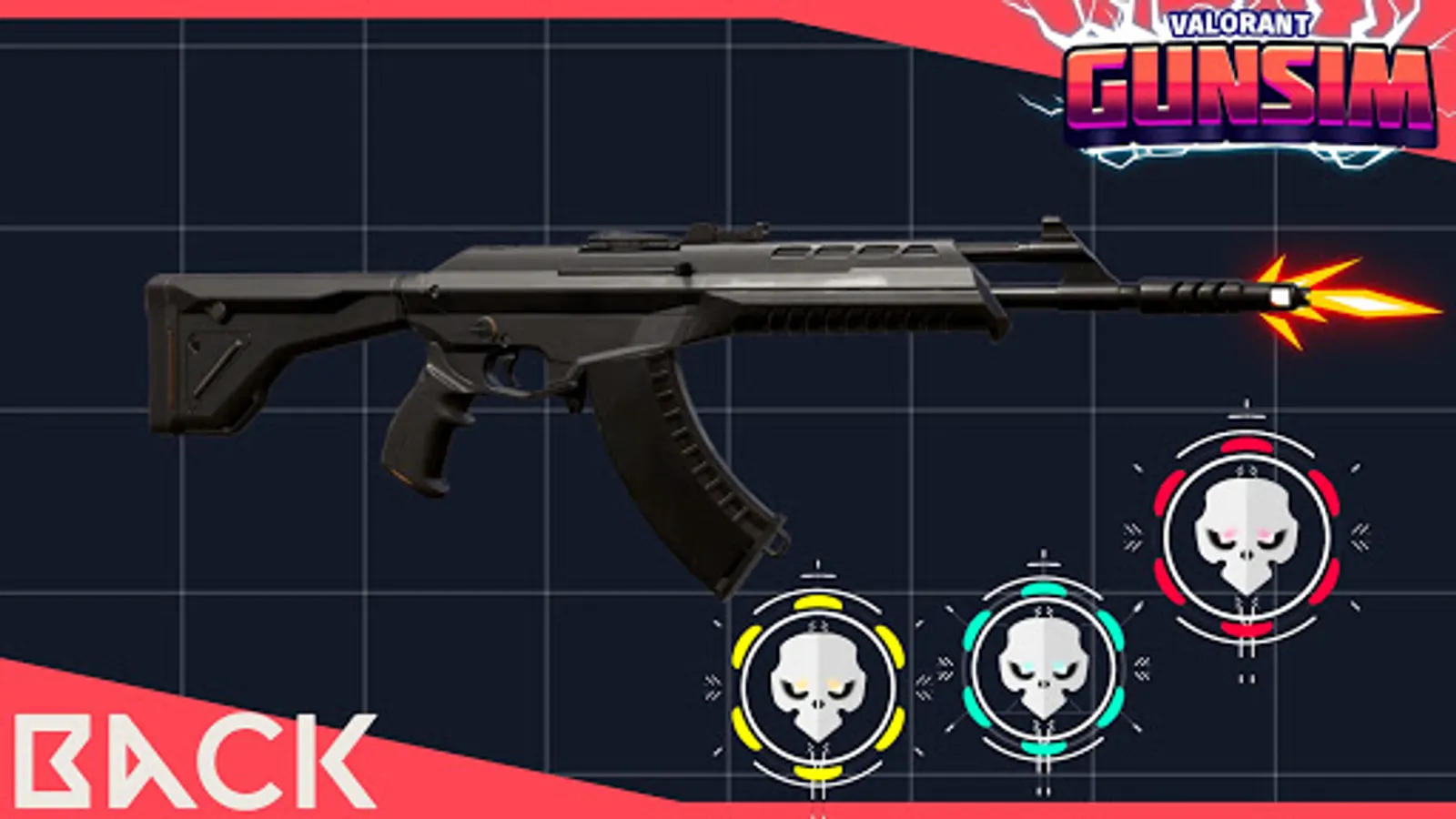 Valorant Gun Simulator is a simulator app for the weapon skins inside of Riot Games' popular FPS Shooter, Valorant. Crafted from the ground up with a clean UI, modern design, and newly rendered effects, as well as sound effects, for the well beloved Valorant weapons. Now includes new weapons from up to Episode 3, Act 1, such as the recently released K/TAC skins
