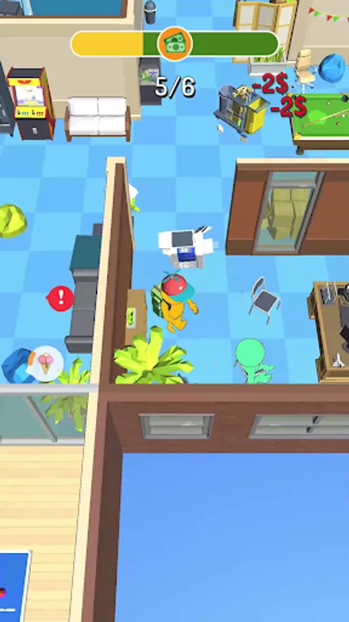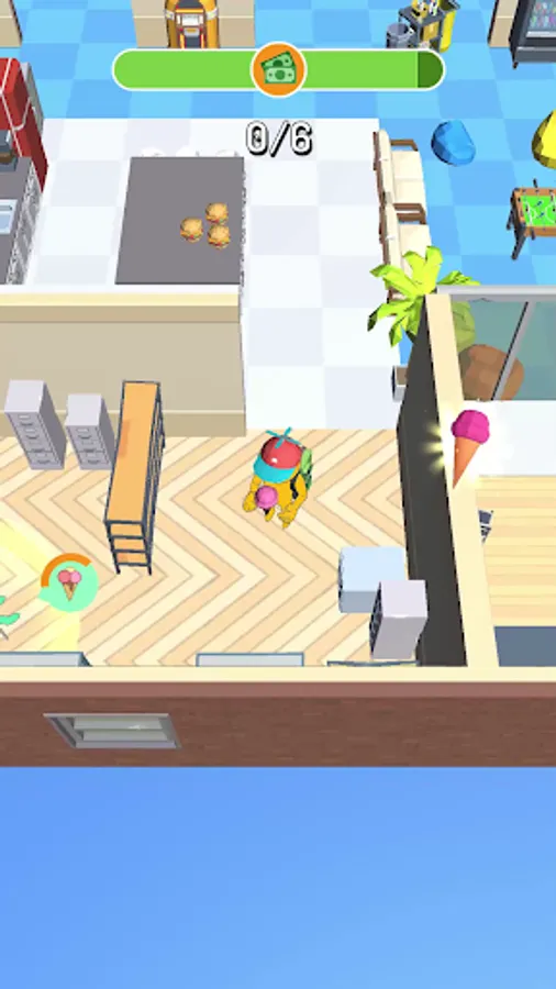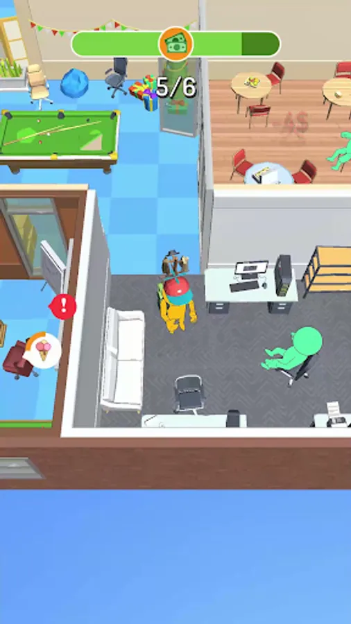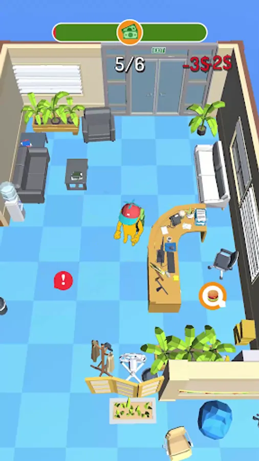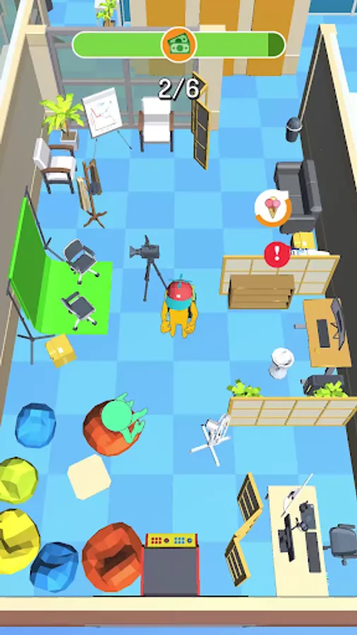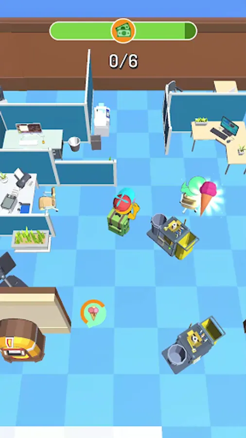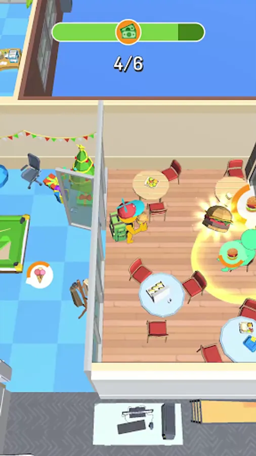 You are a new trainee in the office, your task is to show yourself. Manage to distribute food to your office mates. Hurry, because you have limited time for this. Be careful, there will be obstacles on your way that will hinder you. Don't smash the entire office on your way!