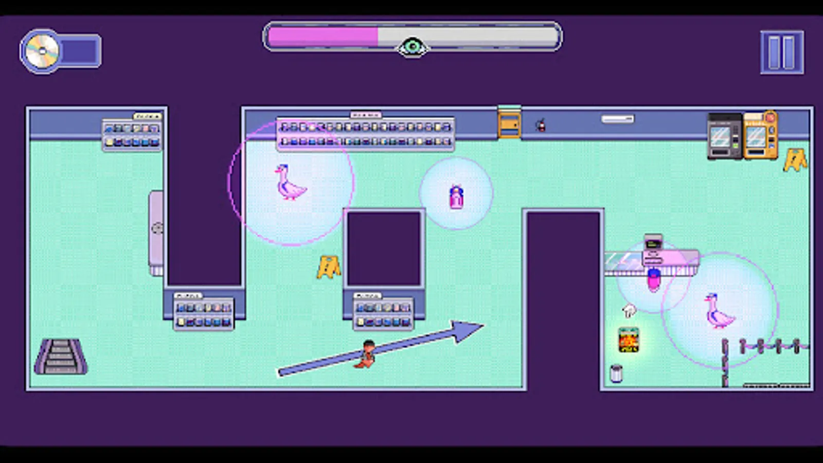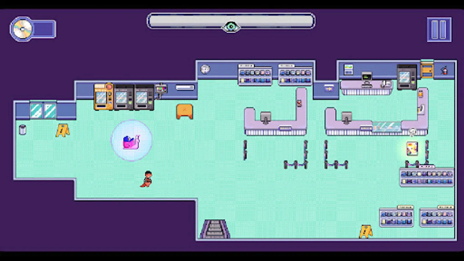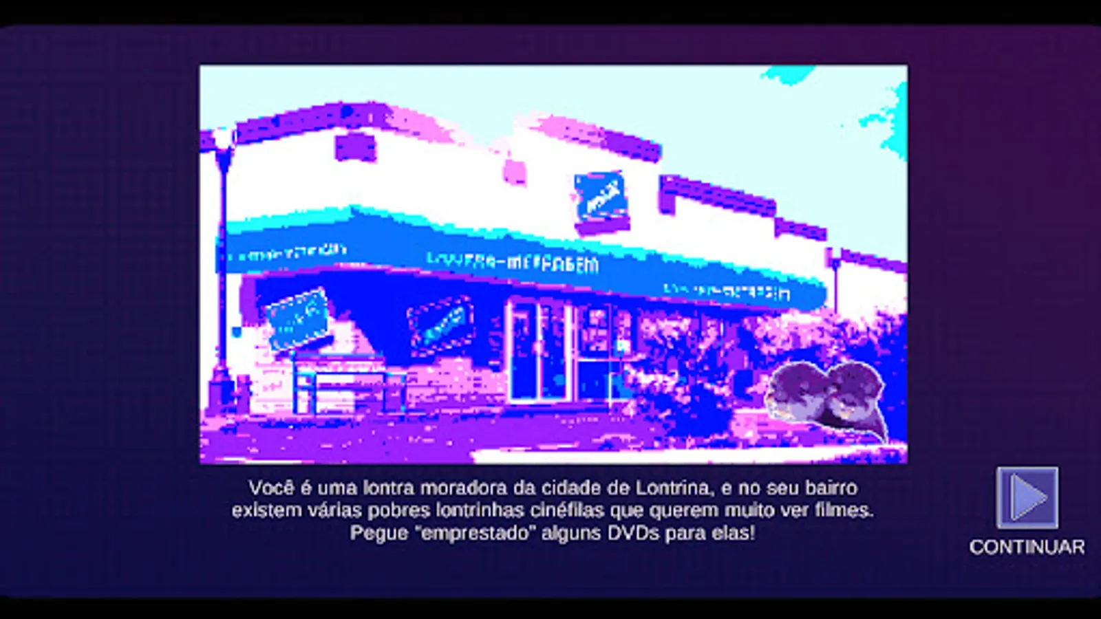 Lontra-Metragem is a dynamic mobile game in which you control an otter that must explore a video store full of attentive employees. Reach the DVD and slide to the exit without being seen in this stealth game with a pixel art aesthetic.