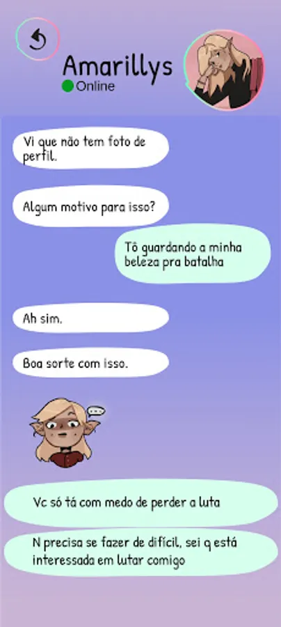 Discover the characters' stories by exchanging messages and battling through the episodes. Make your choices and unlock different endings.