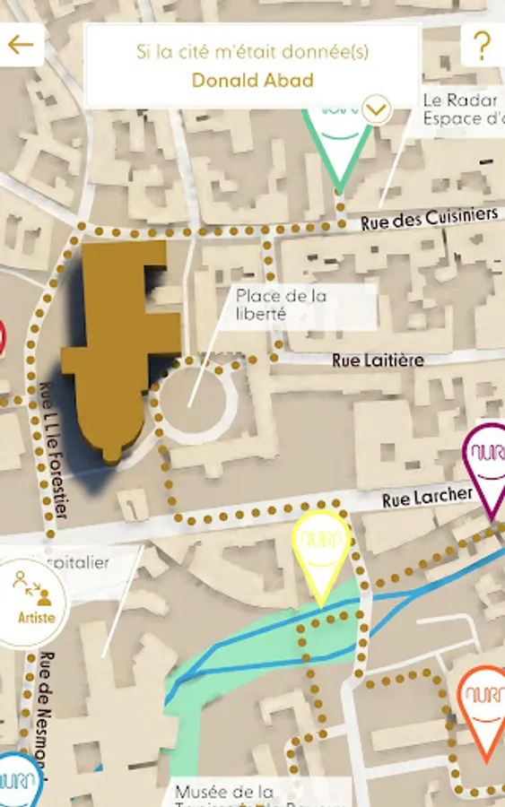 The augmented reality application allows you to discover the works imagined by artists especially for the city of Bayeux, in Normandy. Two projects are visible. For Pan / aura / ma, Justine Emard was inspired by the memory of the city and its walls. Donald Abad, for his part, relied on the data to decipher the city and create If the city was gift/data-ed to me.