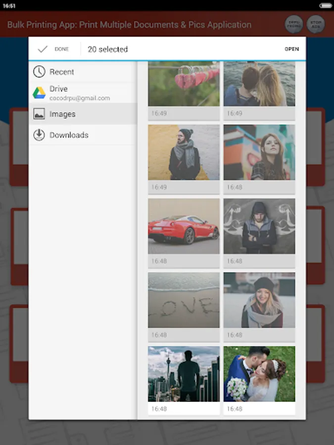 1) Images Printing: App allows you to select multiple Photos from your mobile Phone or Dropbox or Google Drive and Print them all in just one Tap.