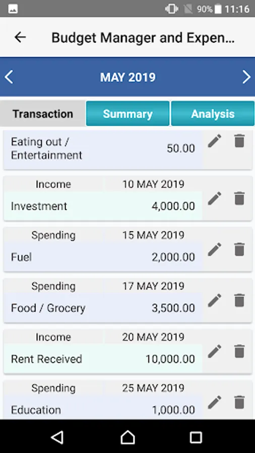 * User can see all the transaction for the selected month/year.