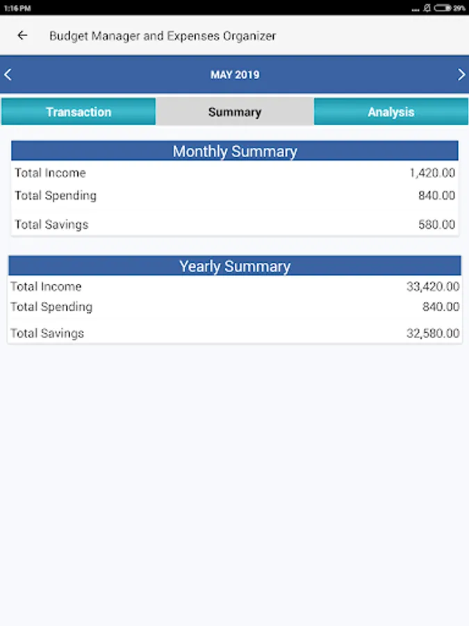 The Budget and Expenses App GUI is simple yet powerful App. This Free android app has been developed for all type of users. App requires absolutely no technical or accounting knowledge and anyone can understand and use easily.