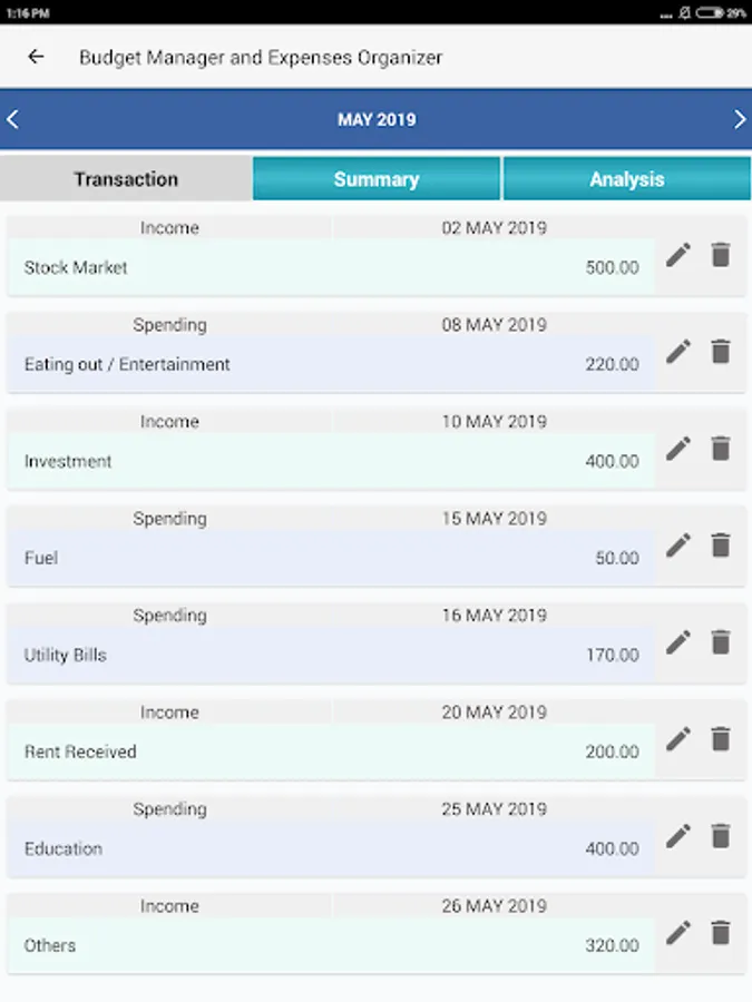 * User can edit the particular transaction for selected day of month/year.