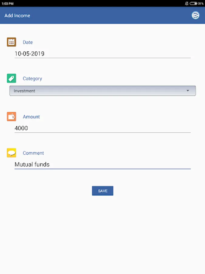 * User can write short detail about income/expense.