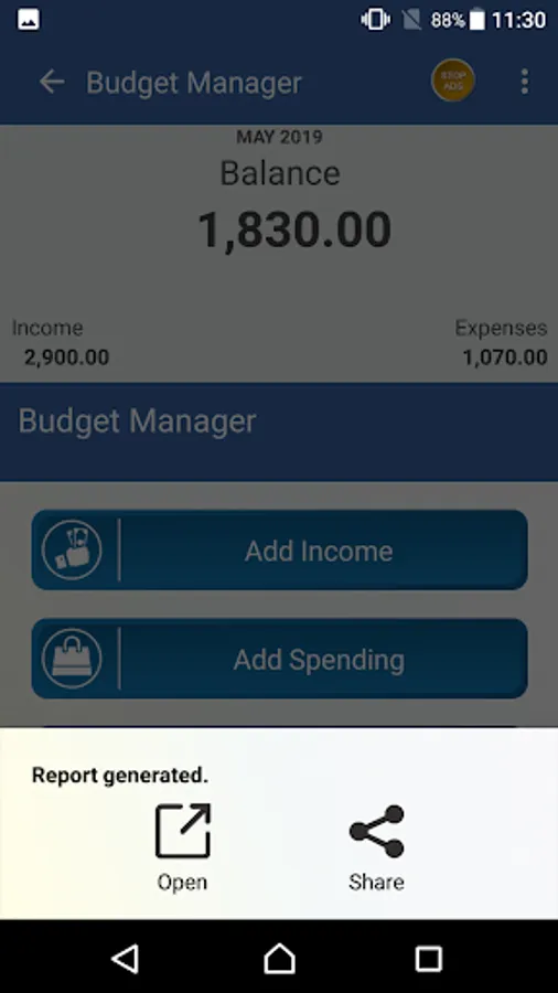 * User can generate detailed report of all transaction as in PDF format for any selected month and year.