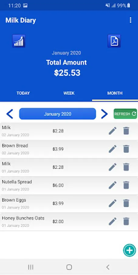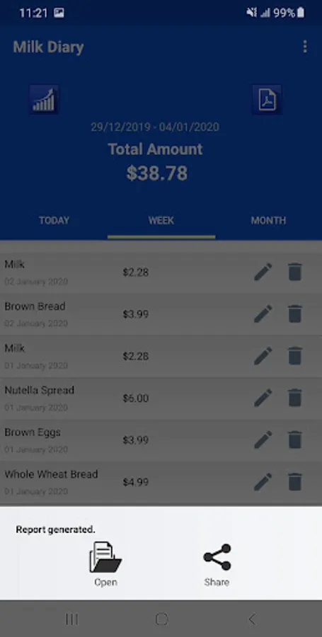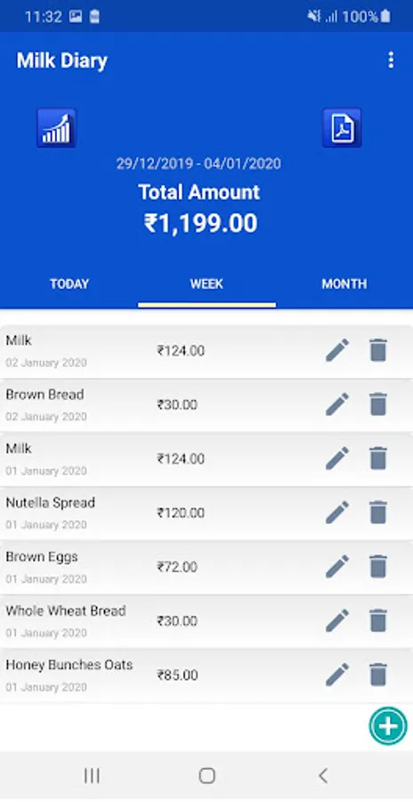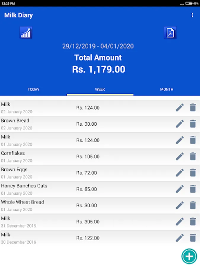 Milk Diary is a free android app for Daily Milk Purchase accounting and Management of Dairy Products and Groceries items expenses to track budget control. App has options to add any type of items and allows you to manage daily and weekly as well as monthly records of expenses.