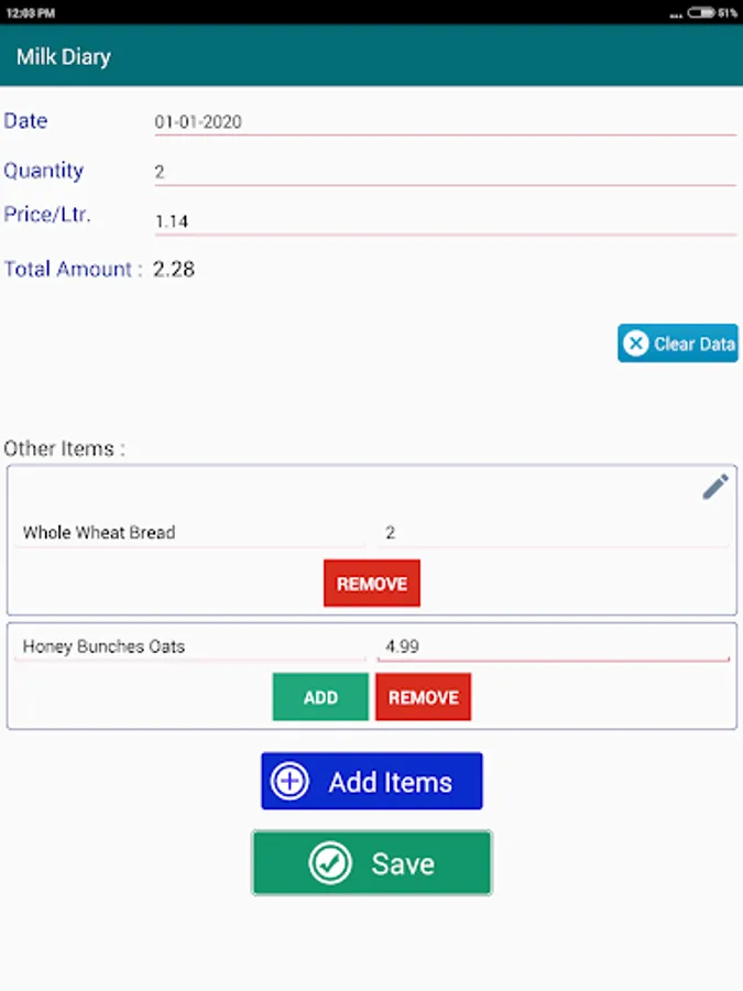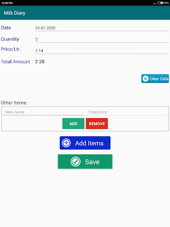 This app is great advantage for users who take milk from milk man or from a daily shop and pay them on weekly basis or at end of the month. This milk notebook allows you to keep record of milk and other items that you bought and does calculation as per your usage for the selected period.
