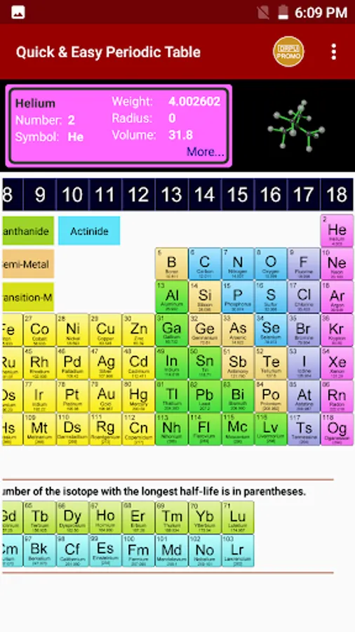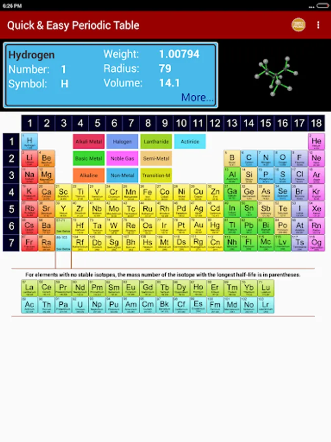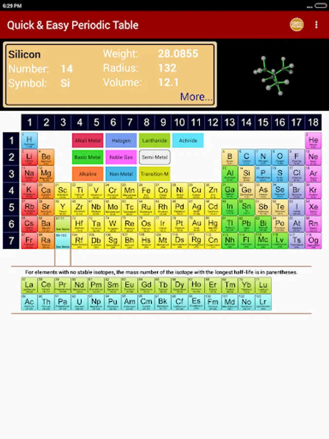 This Free app allows you to easily understand and memorize the chemical elements with complete information of elements including chemical element symbol atomic number atomic weight period group block and their detail information.