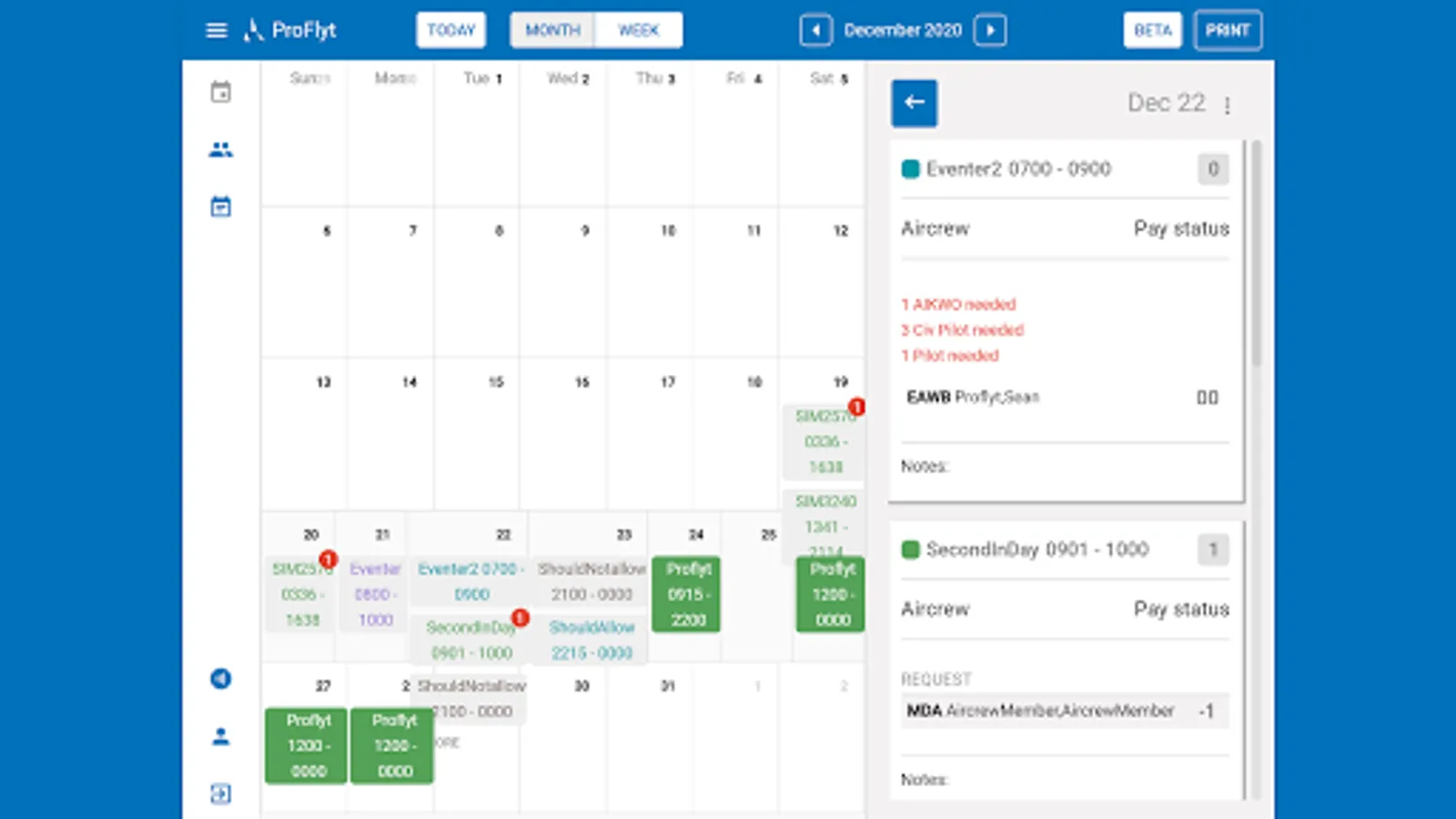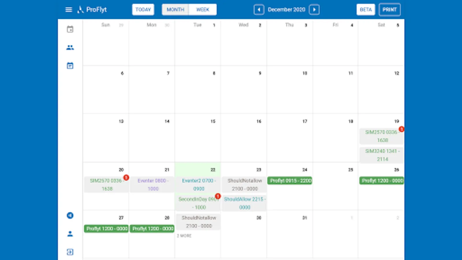 View, interact, and communicate with your flying squadrons real time flying schedule from your personal mobile phone. ProFlyt’s unlimited flexibility enables Squadron Operations to manage the flying, sim, and ground training schedule. With security as the backbone of ProFlyt, Squadron Schedulers may manage the entire schedule from their phone or tablet.