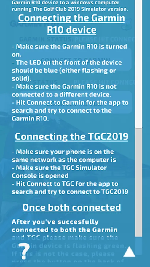Through this app it is possible to connect your Garmin R10 Approach to the The Golf Club Simulator 2019 software. This will allow you to play golf with up to 4 people, either local or online. Compete in the online tournaments on stunning 4k real-life and fantasy courses.