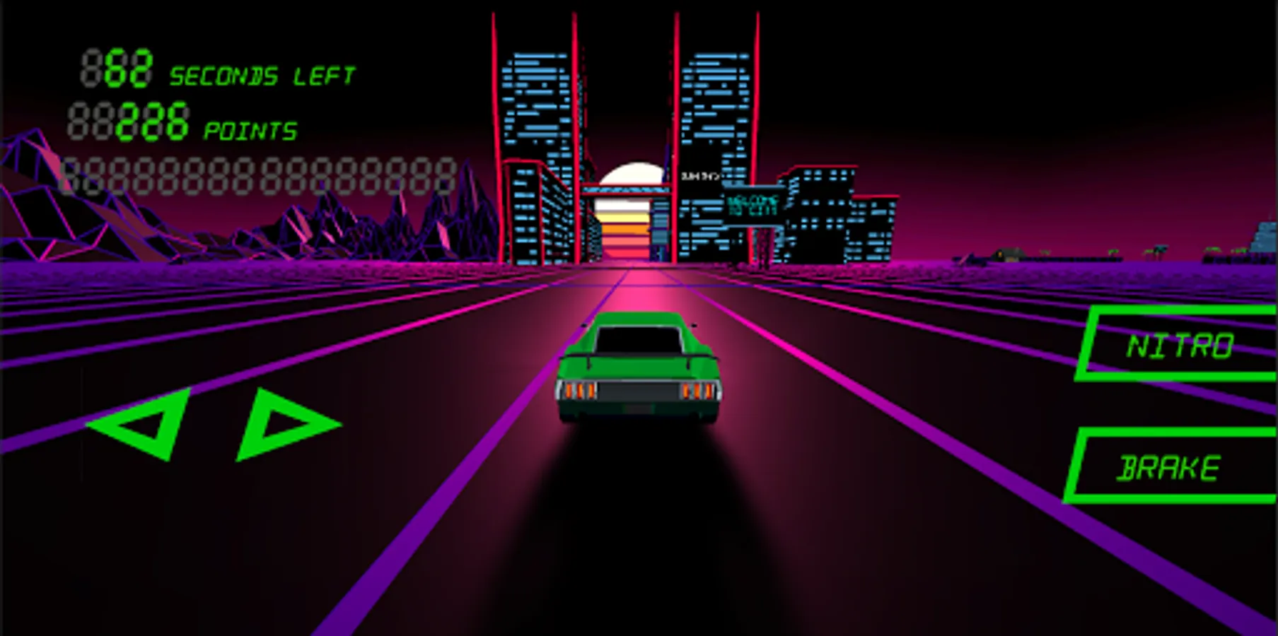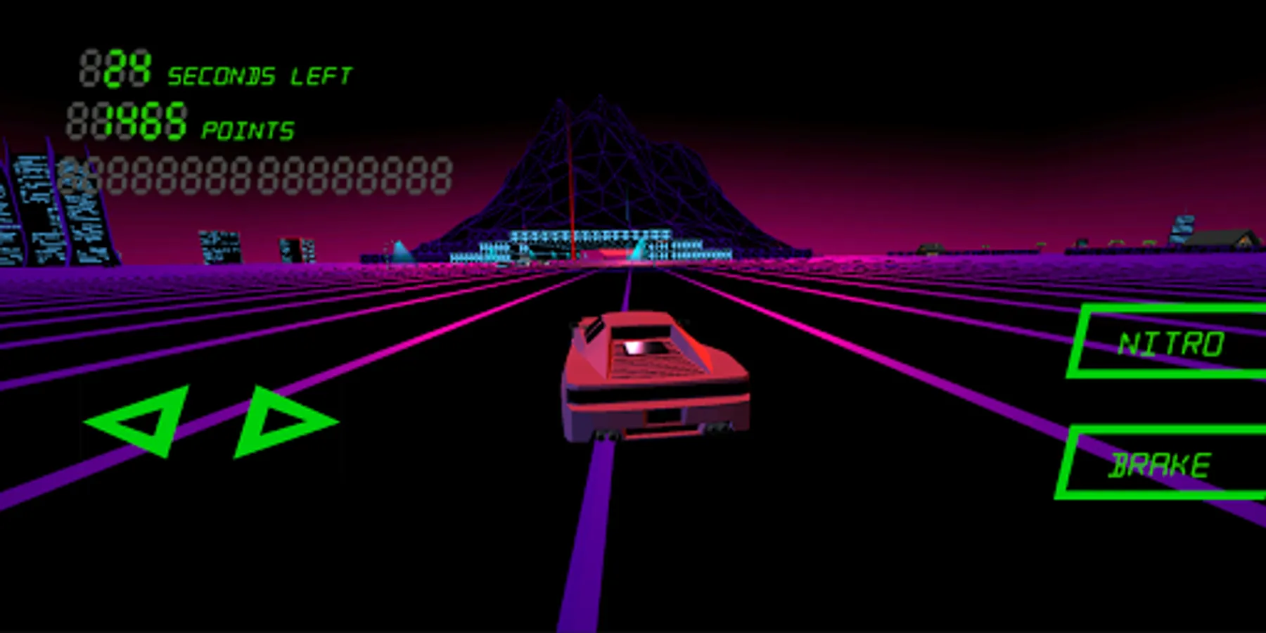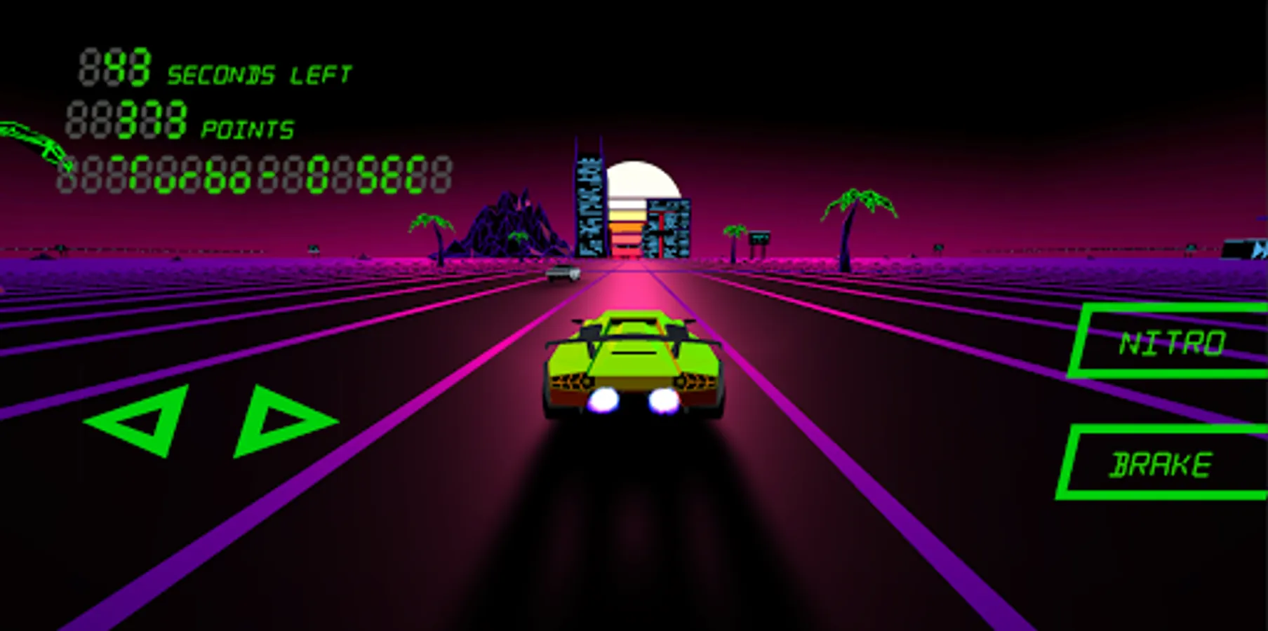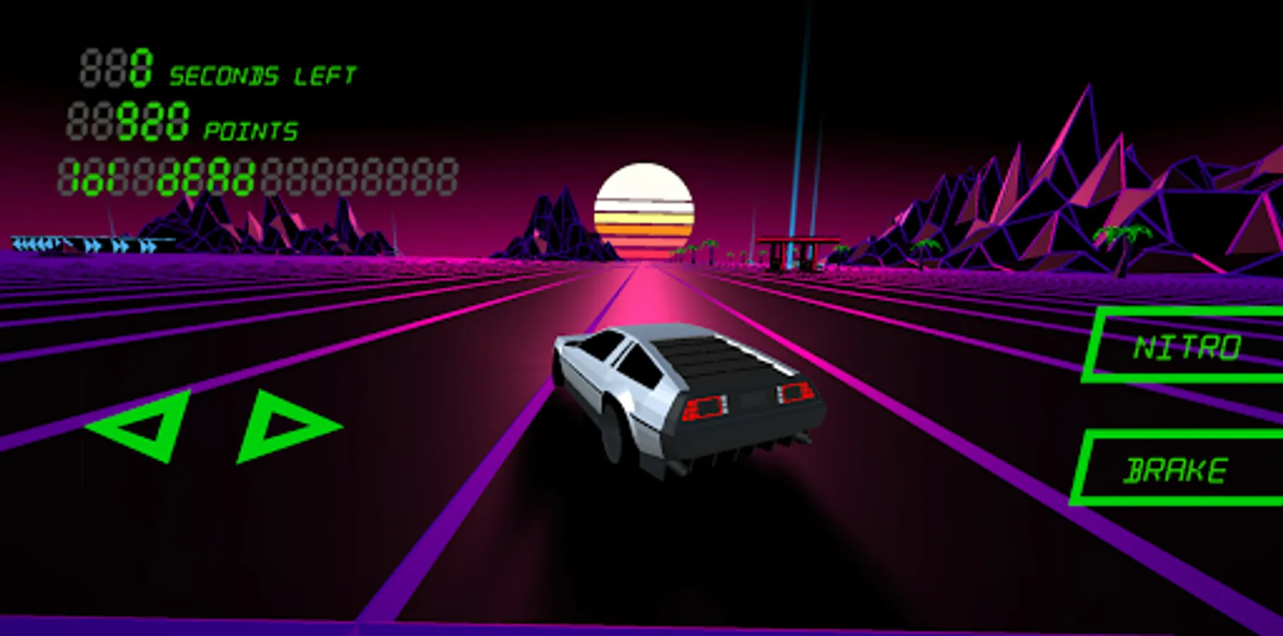 Retrowave drive is an arcade racing game in retrowave style. Time is limited, collect bonuses to get extra time and drive as far as you can. Сollect points and complete challenges to unlock all 9 iconic cars with unique abilities.
