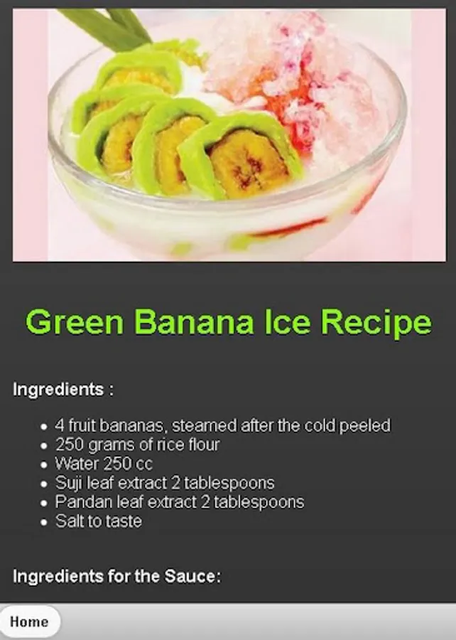 In this application provides several dishes made from basic ingredients bananas that can be used as a reference recipe food or snacks, the following menus are provided as follows: