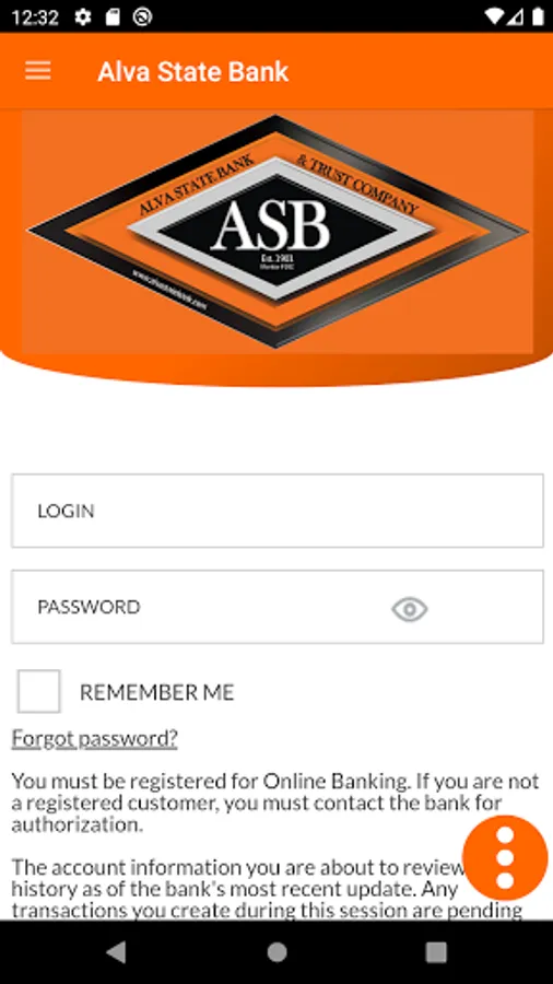 Alva State Bank’s Mobile Banking App lets you view your balances and transaction history, as well as perform funds transfers and loan payments between accounts within Alva State Bank. You can even pay your Bills! Your must be a registered Internet Banking customer to utilize this app.